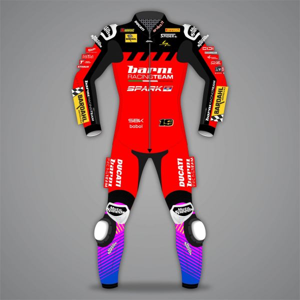 Alvaro Bautista Suit Ducati Barni Spark Racing Team 2026 delivers pro-grade safety and race-ready comfort. Top-grain leather and CE armor protect shoulders, elbows, knees, and spine. Riders love its fit, pre-curved sleeves, and strong seams. The suit feels secure and lets you ride with confidence.