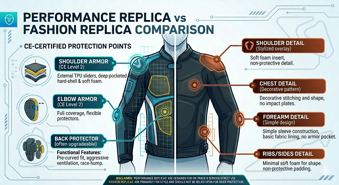 La seguridad de una chaqueta de moto réplica depende de la confección, no de la marca.