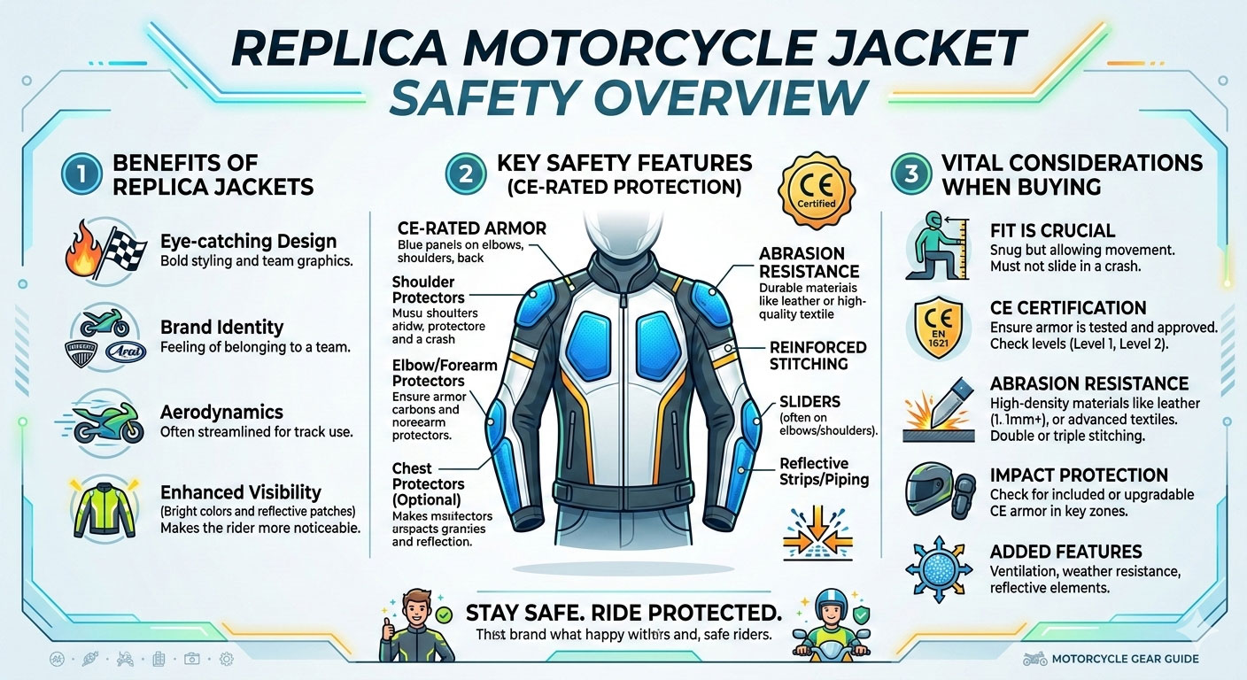 Esta guía explica qué hace que una chaqueta réplica de MotoGP sea segura para la conducción urbana y qué hay que tener en cuenta antes de comprarla.